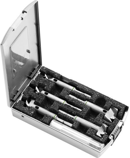 • praktyczne pudełko na wiertła. Dokładne wiercenia w każdej pozycji: w praktycznym pudełku jest 5 wierteł CENTROTEC ZOBO od 15 do 35 mm